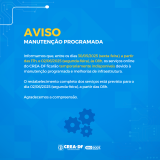 Informamos que, entre os dias 30/05/2025 (sexta-feira), a partir das 17h, e 02/06/2025 (segunda-feira), às 08h, os serviços hospedados na infraestrutura de Data Center do CREA-DF ficarão temporariamente in