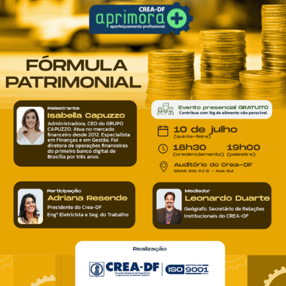 📍 Local: Auditório do CREA-DF – SGAS 901, CJ D – Asa Sul