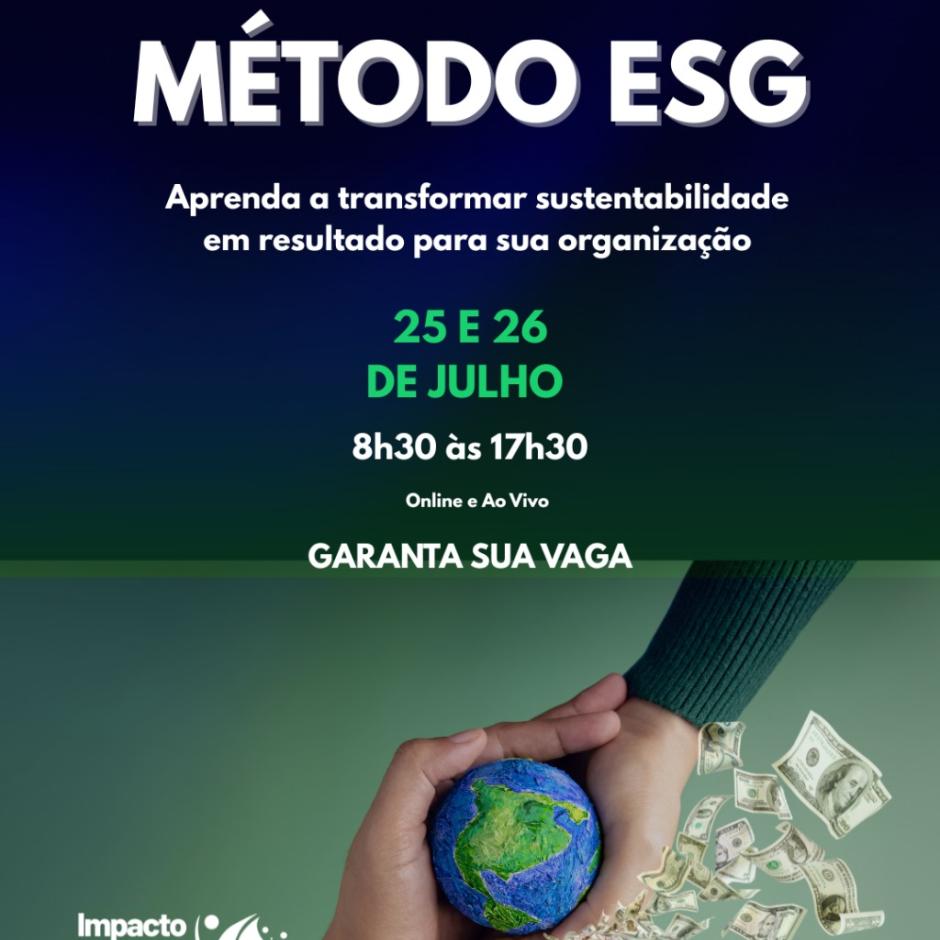 Nos dias 25 e 26 de julho, você tem a chance de participar do MÉTODO ESG: uma imersão online, ao vivo, com aplicação prática, ferramentas reais e mentoria direta com o especialista Eduardo Oliveira, referência em ESG e certificações.