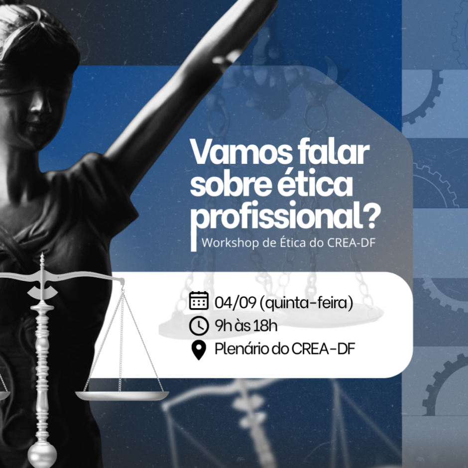 O Conselho Regional de Engenharia e Agronomia do Distrito Federal (CREA-DF) realiza, no próximo dia 04 de setembro, o Workshop de Ética, no Plenário do Conselho, das 9h às 18h. O evento tem como objetivo promover a reflexão e o debate sobre a ética no exercício profissional, reunindo especialistas e representantes do Sistema Confea/Crea e Mútua.