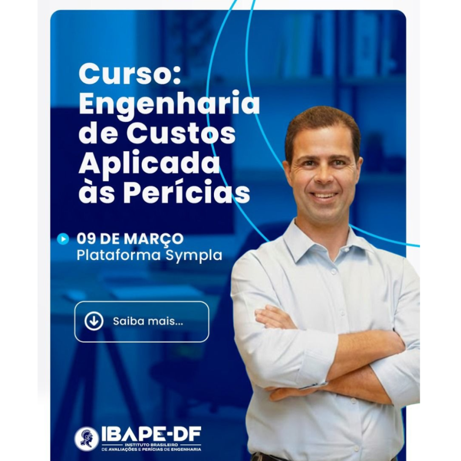 No dia 09 de março, o IBAPE-DF promove o curso Engenharia de Custos Aplicada às Perícias, via Sympla. Uma oportunidade de aprimorar o rigor técnico e a responsabilidade que a nossa profissão exige.