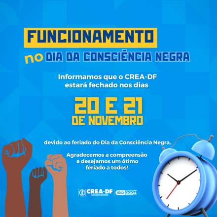 ⚠️Atenção ao expediente do CREA-DF no feriado do Dia da Consciência Negra. 📆Informamos que o CREA-DF estará…