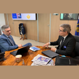 Na manhã desta quarta-feira, o presidente do Confea, Vinicius Marchese, recebeu o diretor de vendas técnicas Latam da multinacional francesa Dassault Systèmes, Vinicius Pinto, para conhecer o laboratório deles 3DEXPERIEN
