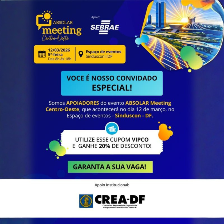 O CREA-DF apoia o evento e reforça a importância de discutir o futuro da energia solar com responsabilidade técnica e participação ativa dos profissionais da área.
