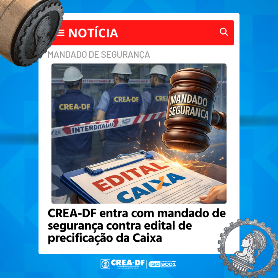 O Conselho Regional de Engenharia e Agronomia do Distrito Federal (CREA-DF) protocolou, na quarta-feira (11/03), um mandado de segurança na Justiça Federal da 1ª Região contra o Edital de Credenciamento nº 0012/2026 da CAIXA.